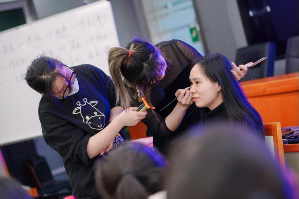 活動(dòng)邀請(qǐng)了國(guó)家形象管理講師向東老師為大家講解。向東老師以 “職業(yè)妝”為例,對(duì)美妝步驟、美妝工具進(jìn)行了詳細(xì)的介紹;同時(shí)通過(guò)理論和實(shí)踐結(jié)合的形式,邀請(qǐng)一名同學(xué)作為模特進(jìn)行演示,講解并 展示了美妝技法;并且通過(guò)別開(kāi)生面的互動(dòng)學(xué)習(xí),介紹了臉型分類、眉型搭配等要領(lǐng),幫助學(xué)員更好的認(rèn)識(shí)自己,根據(jù)自己的臉型調(diào)整化妝技法,找到適宜妝容;最后對(duì)大家日?;瘖y中存在的問(wèn)題一一進(jìn)行了細(xì)致解答并提出建議?;顒?dòng)現(xiàn)場(chǎng)氣氛活躍,大家懷抱著一顆顆“愛(ài) 美之心”,積極參與互動(dòng),熱情投入學(xué)習(xí)。